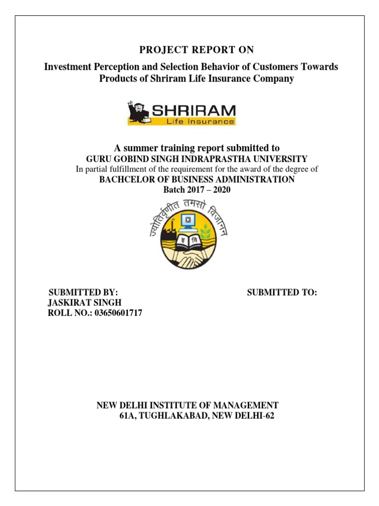 Backup Project Report Report On Shriram Life Insurance Insurance Financial Services