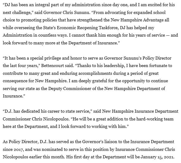 We are committed to doing so in an honest effective and timely manner. Open enrollment ends May15th. The mission of the New Hampshire Insurance Department is to promote and protect the public good by ensuring the existence of a safe and competitive insurance marketplace through the development and enforcement of the insurance laws of the State of New Hampshire.